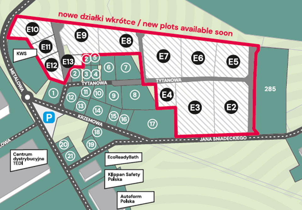 Nowoczesny, doskonale przygotowany teren dla każdego kto poszukuje rozwijającego się miejsca dla swojego biznesu. Znajdziesz się w sąsiedztwie takich firm jak: Bridgestone Stargard, Klippan Safety Poland, Cargotec Poland, Radiometer Solutions, Lidl, Drogbud, Madrog.